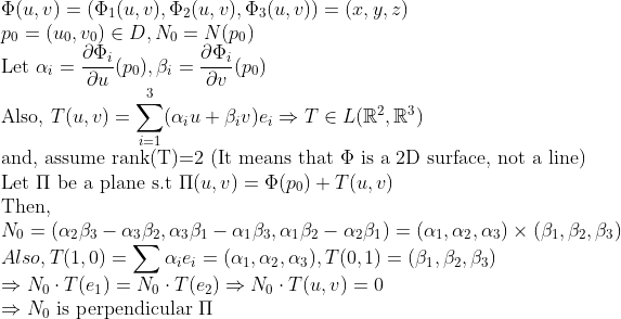 1. 모든 p_0에 대해서 성립해야 하므로, 모든 곡면 위의 점에서 N은 접평면과 수직이다!