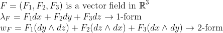 그러면, 이제 저 ds자리(미분형식)에 다른 미분형식을 넣어보자! -> 가장 만만한 미분형식 -> 벡터장을 미분한 것!