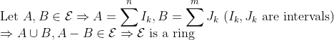 (2) (sigma-ring이 아님... -> 추후 확장! (뒤에 나오는 outer measure로!)