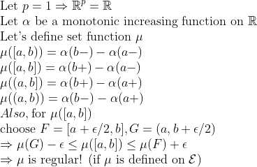 우리가 리만스틸체스 적분에서 적분구간에 단조증가함수 alpha를 태워 보냈던 것처럼, 여기서도 비슷한 느낌으로, measure를 확장할 수 있다!