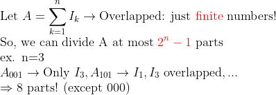 즉, Elementary set은 구간의 finite한 합집합이므로, 중복되는 구간도 기껏해야 Finite이므로, 다 잘게 쪼개버릴 수 있다!