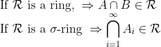 이 때, 무한합집합이 닫혀있으면 sigma-ring이라고 한다.