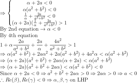 특성방정식의 해를 alpha, beta,... 라고 한다면 이 해들이 모두 LHP에 있으려면