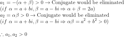 사실, 위에서 계속 근과 계수의 관계를 이용하였지만, 원래 복소수함수의 성질을 이용해서 이를 증명한다. (Routh-Hurwitz Theorem)