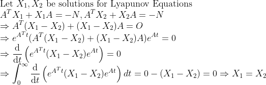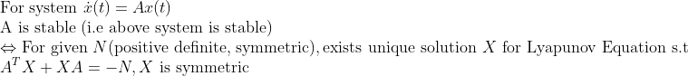 즉, Lyapunov Equation의 Positive Definite 해가 유일하게 존재하면 저 시스템이 Stable하다는 내용이다.