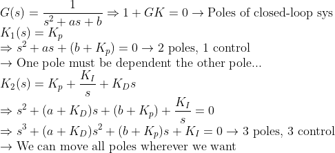 게다가, 여러 개를 쓰면, 복잡하긴 하지만, 자유도를 높이는 효과(PID 다 쓰면, 변수가 3개이다!)가 있어서, 주어진 성능을 맞추는데 조금 더 유리한 측면이 있다.