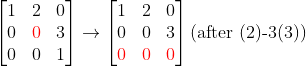 이어서 가우스-조던 소거법까지 가보면... (여기서, 대각성분이 0인 것은 일단 무시하자.)