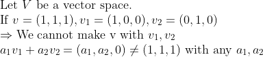 그런데, 스칼라곱과 벡터합을 아무리 잘 뒤섞어서 계산해도 v가 안 만들어 질 수 있다.