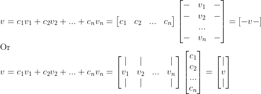 즉, 선형결합을 행벡터나 열벡터로 나타낼 수 있다.