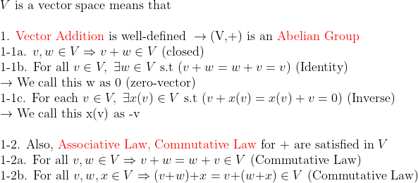 => 결론은, 벡터합에 대해서 이 집합 V가 아벨군이면 된다!