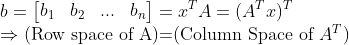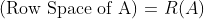 즉, Row Space는 A의 열벡터가 만드는 Linear Combination의 모음이라고 생각하면 된다. 또한, 다음과 같이 표현한다.