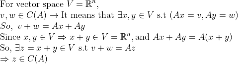 1. v,w가 Column Space에 있기 때문에 저런 x,y를 뽑을 수 있고,