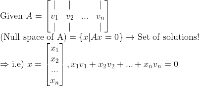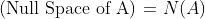즉, Null Space는 Ax=0의 해의 집합이라고 생각하면 된다. 그리고 다음과 같이 표현한다.