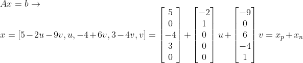 Free variable(u,v)에 영향을 받는 벡터의 선형결합이 Homogeneous Solution (Ax=0)이 된다!