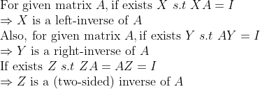 (two-sided inverse는 우리가 이미 알고 있는 바로 그 역행렬(Inverse)를 생각하면 된다!)