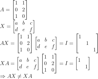- 그러나, Inverse가 왼쪽에 있는지, 오른쪽에 있는지에 따라서, Identity Matrix I의 모양이 달라진다!
