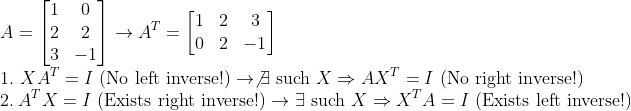 그러면, 이제 역행렬의 정의를 확장해서 Left / Right / Two-sided Inverse가 존재하는지 안하는지 확인해보자!