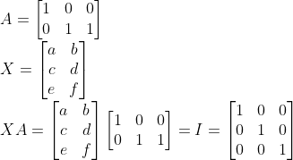 (즉, 2 by 3 행렬에서 => 3 by 3 Identity를 만드는 역행렬은 -> 존재하지 않는다!)