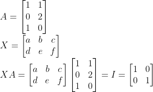- Identity Matrix I는 정사각행렬이어야 한다. 그러면, XA: (x by m)*(m by n) = (x by n) 행렬 => x=n => I: n by n 행렬