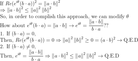 저기서 Real Term이 사실 내적 값의 제곱이면 바로 증명이 끝나니, theta를 그렇게 되도록 잡자.