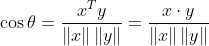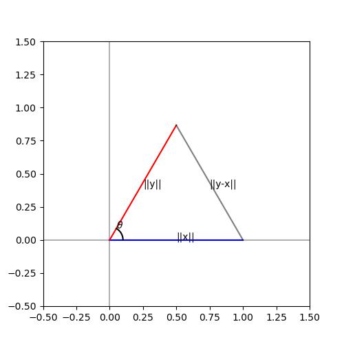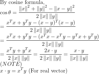 그러므로, 내적, 각도, Norm과의 관계는 다음과 같다.