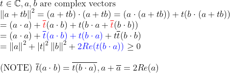 여기서 a,b는 주어진 벡터(바꿀 수 없음)이고, t는 그냥 마음대로 잡은 복소수이다.