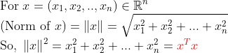 (여기서 눈 여겨 보아야 할 건... => 저 전치행렬(Transpose) 꼴의 표현은 오직 "실수벡터"만 성립한다는 점이다!)