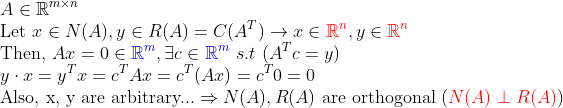그러면, 신기하게도 N(A)와 R(A)가 서로 Orthogonal Complement가 된다!!