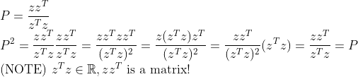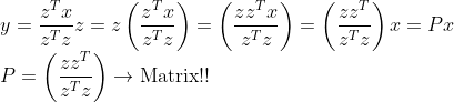 이렇게 구한 Projection Matrix는 => 분자부분은 분명히 Matrix!!!, 분모부분은 실수!!(z의 norm)