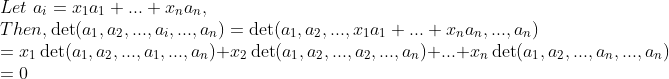 어떤 행/열이 linearly dependent하면 det A=0이다.