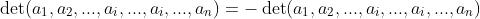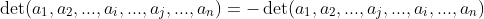 행렬에서 열만, 혹은 행만 서로 (1번만) 바꿔치기하면 행렬식의 크기는 같고 부호만 달라진다.
