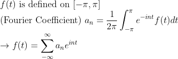 푸리에 급수의 Coefficient를 구하는 것은 해석학 파트에서도 설명이 되어 있으니, 자세한 설명은 해석학 파트를 참고!