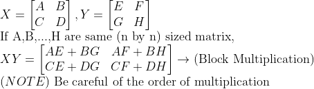 먼저, Block Matrix란 -> Matrix를 Matrix로 표현한다고 생각하면 된다.