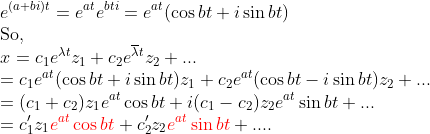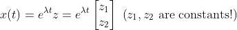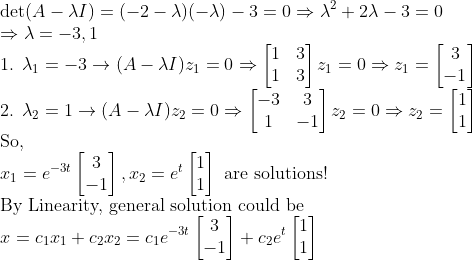 해의 꼴이 Exponential 함수의 선형결합으로 나오는 것을 확인할 수 있다. (Eigenvalue가 중근이 나오는 것은 일단은 제외)