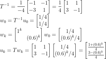k가 커지면 (0.6)^k는 사라지므로, 결국 시간이 아주 많이 지나면