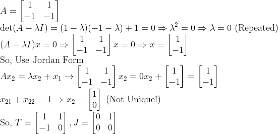 이러한 방법을 모든 Eigenvalue에 대해서 수행할 수 있으므로, 결국 모든 A에 대해서 T와 J를 구할 수 있다!!