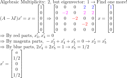 2. 중복되는만큼 Eigenvector를 찾을 수 없다!!! -> Diagonalization이 불가능!