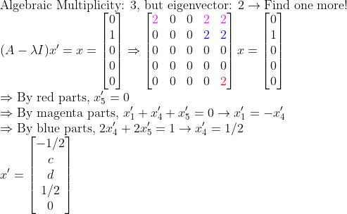=> 위의 1번 케이스인 경우! (다른 Eigenvector를 찾는 경우))