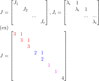 이 비슷한 모양을 바로 "Jordan Form"이라고 하고, 다음 모양이다.