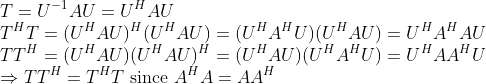 으로 식이 계속 나오므로, 결국 모든 차원에 대해서 Normal한 Triangular Matrix T는 항상 Diagonal이어야 한다.