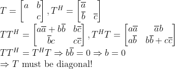 으로 식이 계속 나오므로, 결국 모든 차원에 대해서 Normal한 Triangular Matrix T는 항상 Diagonal이어야 한다.