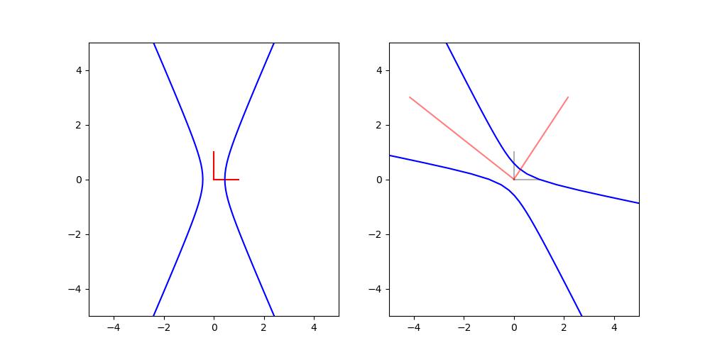 주어진 이차곡선이 마치 "타원"처럼 보일수도 있지만, 실제로 계산해보면, 쌍곡선이 나온다는 사실을 알 수 있다!!