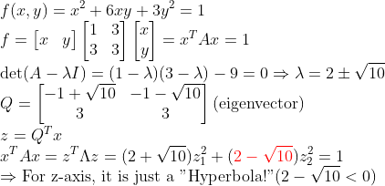 2. 저 Quadratic Form이 양수가 나온다! -> 이차곡선을 해석할 때, 계수의 부호가 바뀌지 않아도 된다!