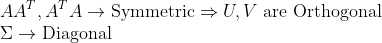 Orthogonal(혹은 Unitary) Matrix U, V는 각각 AA^T, A^TA가 Symmetric이라는 점을 이용해서 Eigenvalue Problem을 통해 구할 수 있으므로, 그냥 주어졌다고 생각할 수 있다.