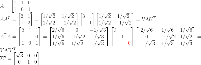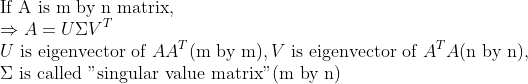 모든 실수 행렬 A(정사각행렬일 필요가 없음)은 다음과 같이 Decomposition을 할 수 있다.