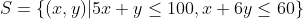 -> 5x+y=100, x+6y=60의 교점이 x=540/29, y=200/29이므로