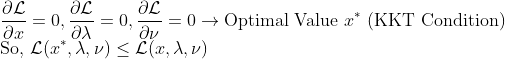 그리고 저 lambda와 nu가 어떤 영역에서 존재하는지 살펴보기 위해 다시 Lagrangian을 끌어와보자.