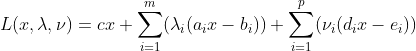그러면, 이 문제에 대한 Lagrangian은 다음처럼 정의할 수 있다.