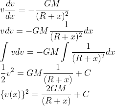 v: 물체의 수직방향 속도, x: 물체가 지구표면에서 이동한 거리