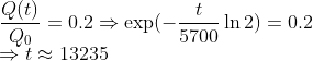 -> 만약에 탄소-14가 80% 줄어든 시료를 발견했다면, 이 시료는